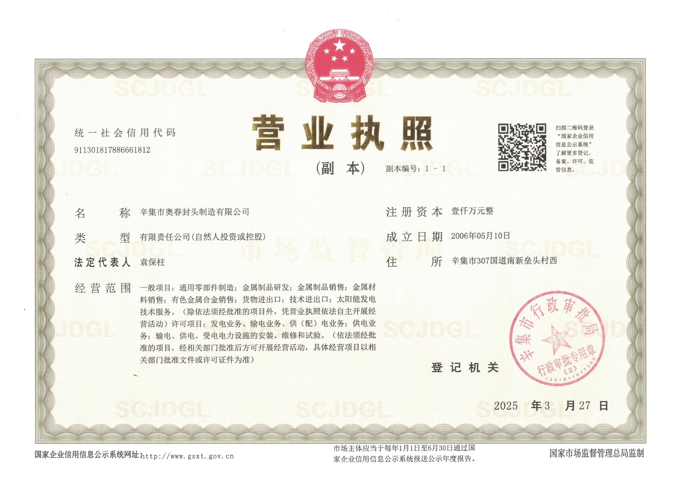 辛集市奧春封頭制造有限公司成立于2006年,坐落于河北省辛集市新壘頭工業區,地理位置優越,毗鄰307國道,北接黃石高速,交通便捷。公司占地面積35000平方米,建筑面積28000平方米,總投資達2億元人民幣,是一家專業制造封頭的廠家。2006年公司成功取得國家A3封頭制造許可證,標志著其產品質量和技術水平得到了國家權威機構的認可。